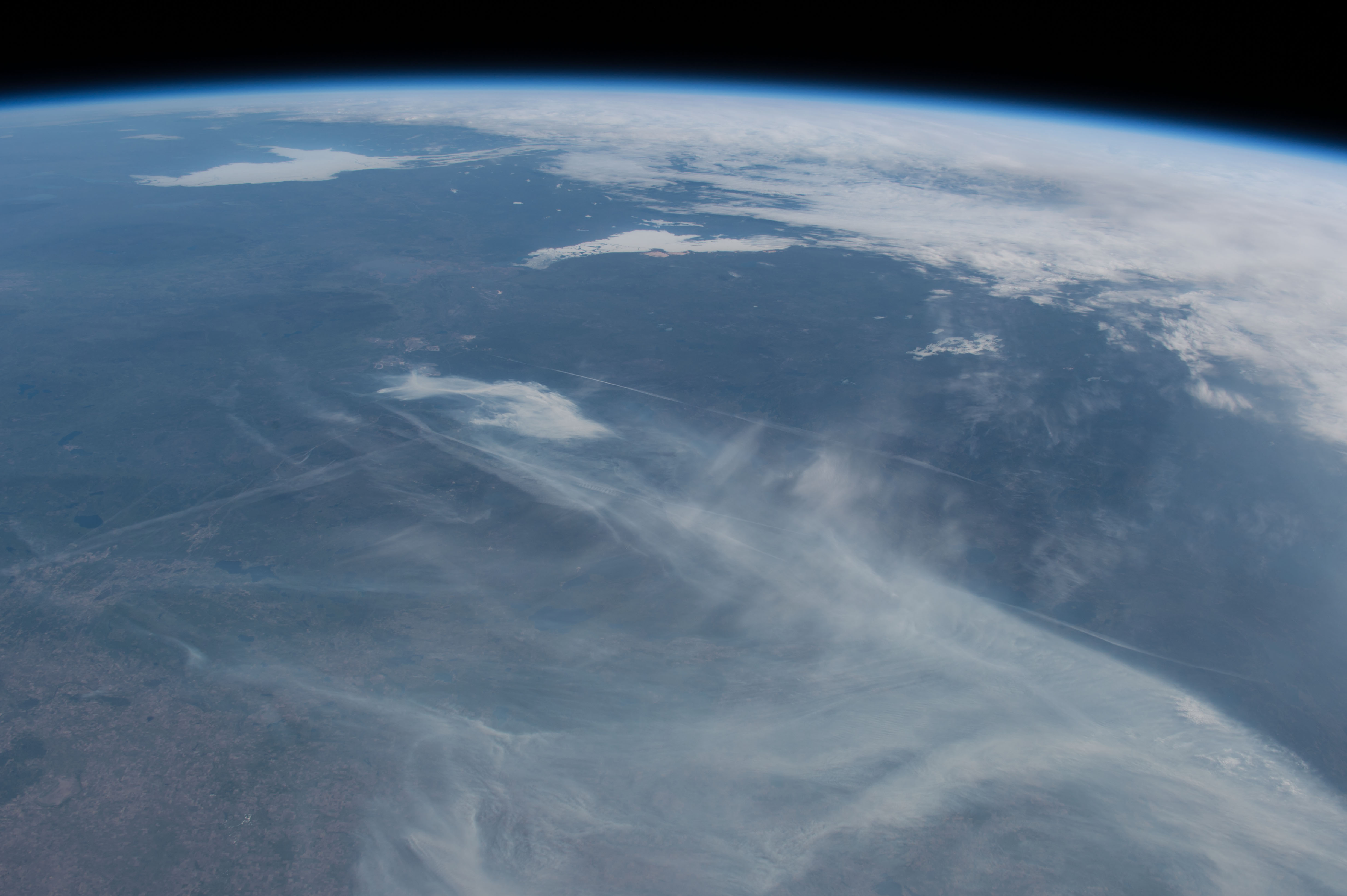 Features: | PAN-FORT MCMURRAY AREA, FIRE PLUMES, L. ATHABASCA, GREAT SLAVE L., ICE |