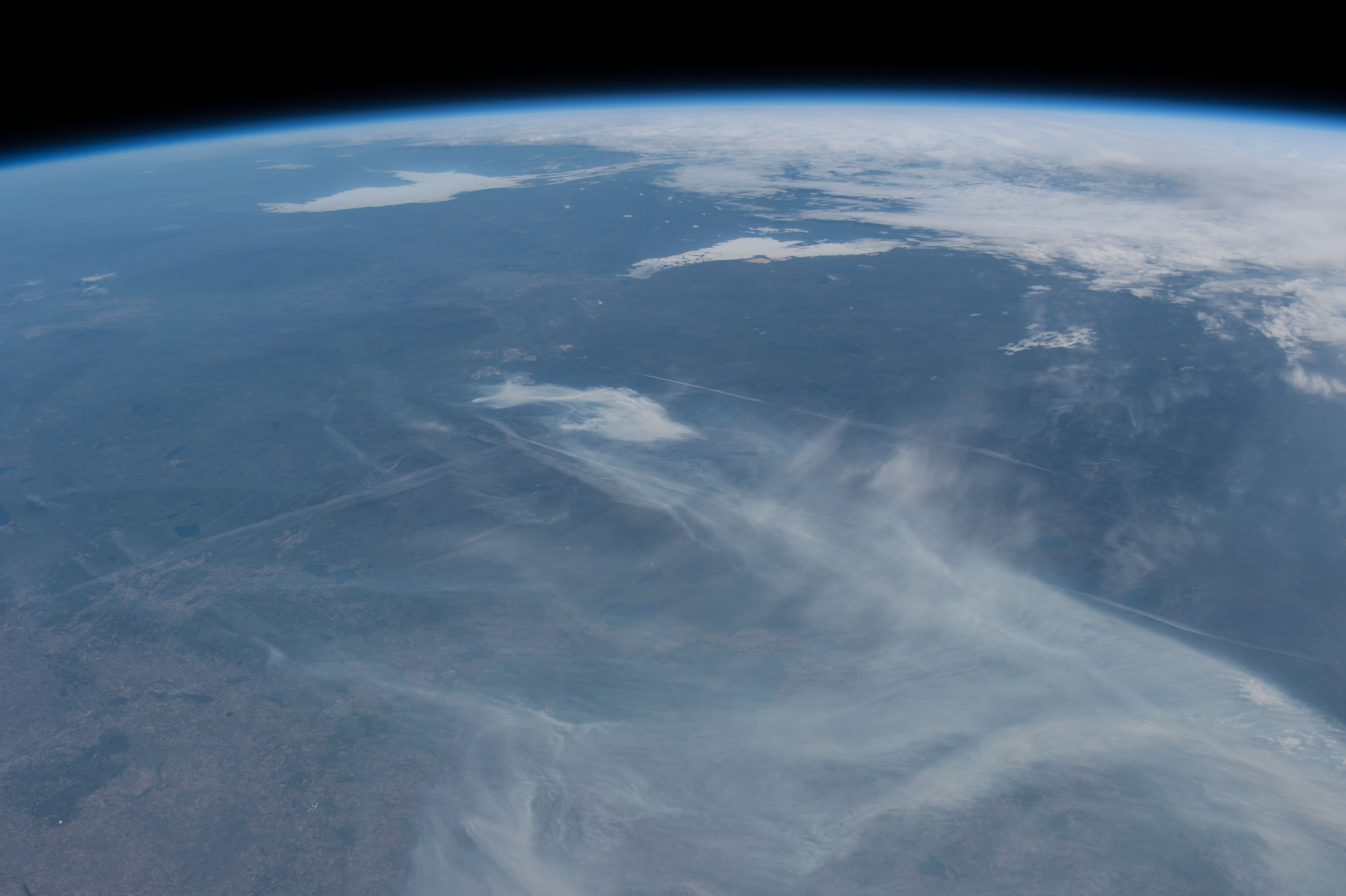 Features: | PAN-FORT MCMURRAY AREA, FIRE PLUMES, L. ATHABASCA, GREAT SLAVE L., ICE |