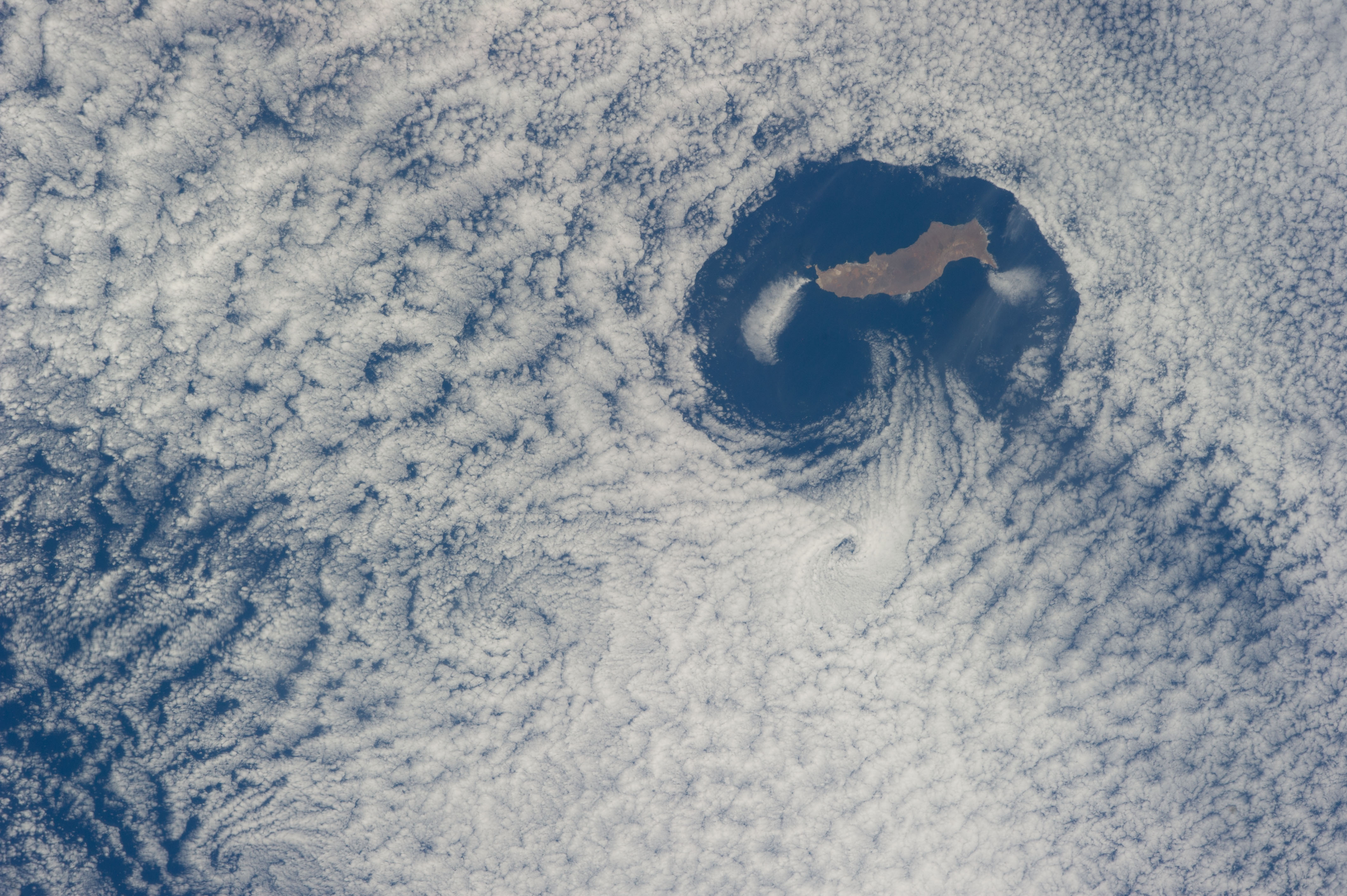 No GeoTIFF is available for this photo.Image Caption: ISS040-E-016569 (21 June 2014) --- From an altitude of 223 nautical miles, one of the Expedition 40 crew members on the International Space Station photographed this nearly vertical image of Guadalupe Island and the Von Karman cloud vortices that are its storied neighbors just off southern California's Pacific Coast.