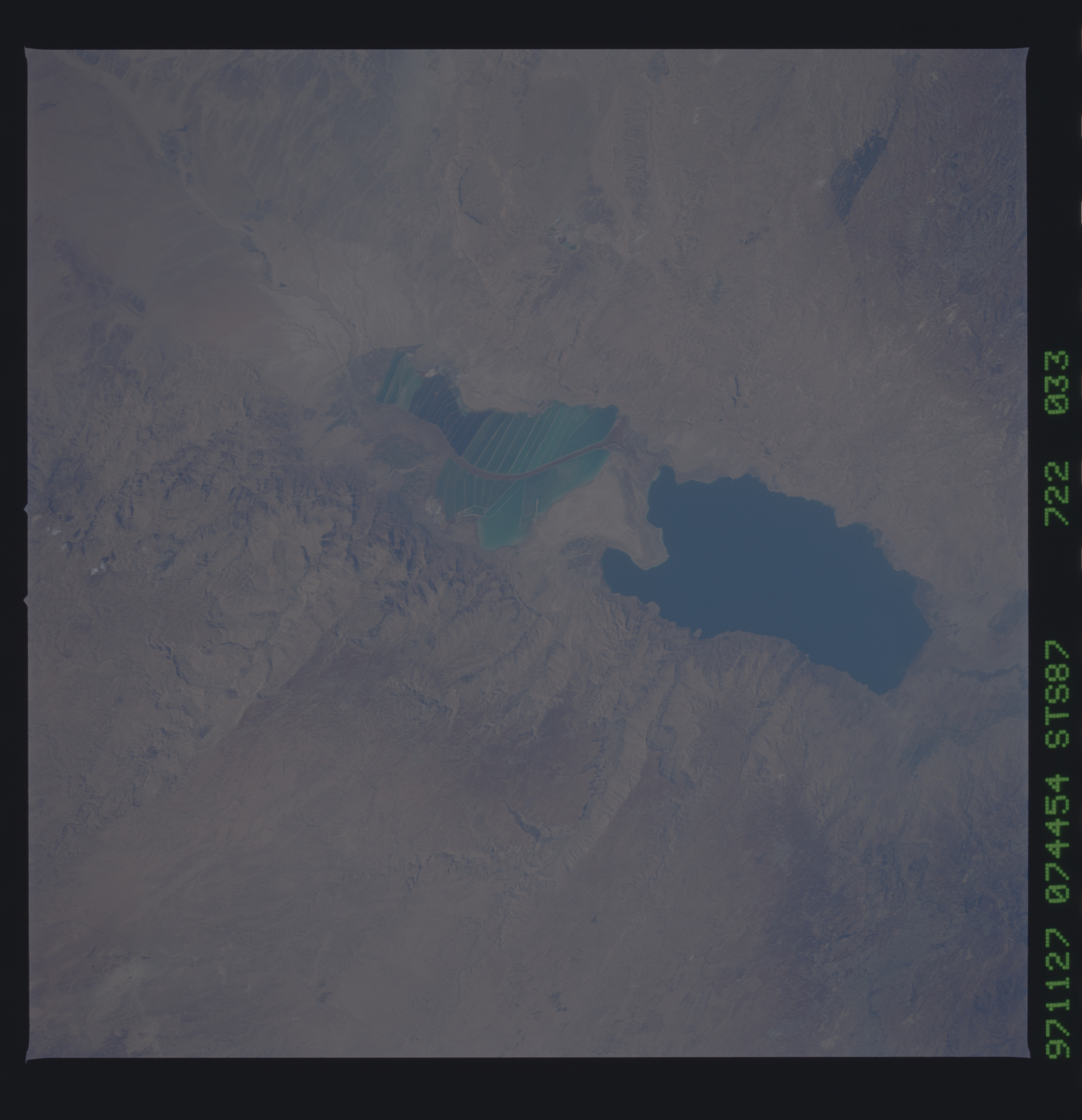No GeoTIFF is available for this photo.Image Caption: Dead Sea salt works. Compare with STS047-151-318.