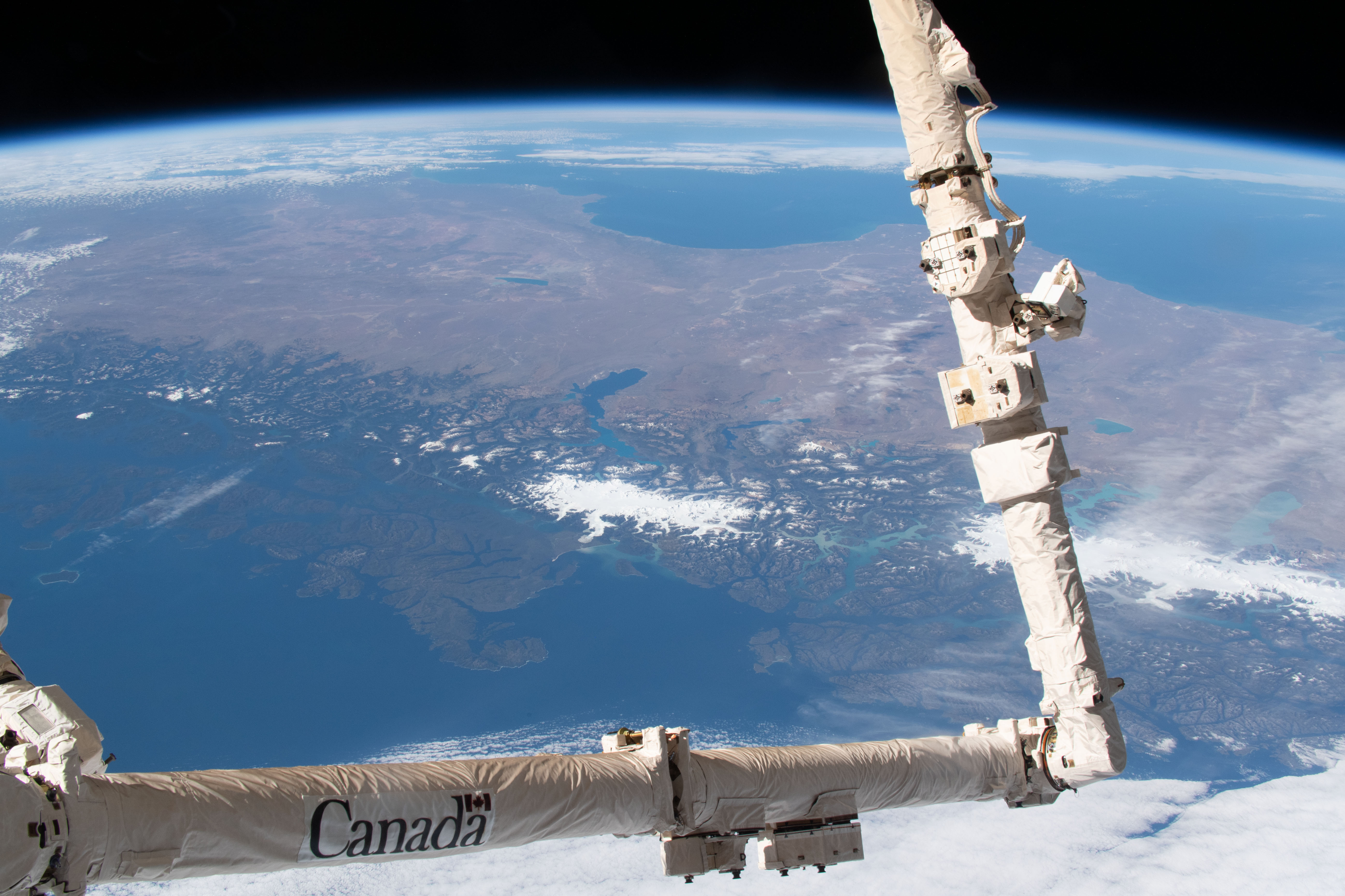 Features: | SAN RAFAEL GLACIER, PATAGONIA, SNOW, ISS, EARTH LIMB |