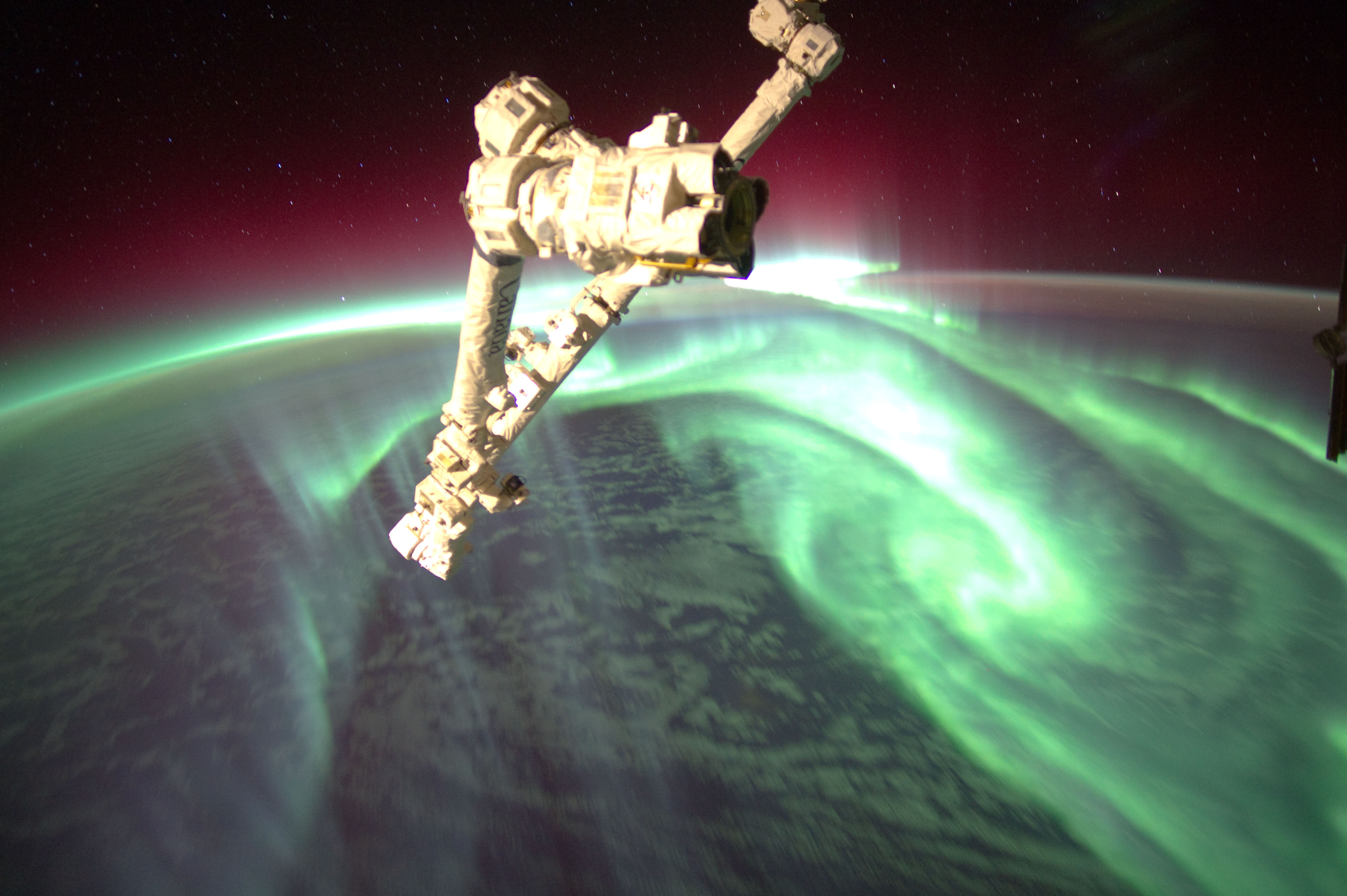 Features: | PAN-AURORA AUSTRALIS, ATMOSPHERIC LIMB, STARS, ISS, SOFT |