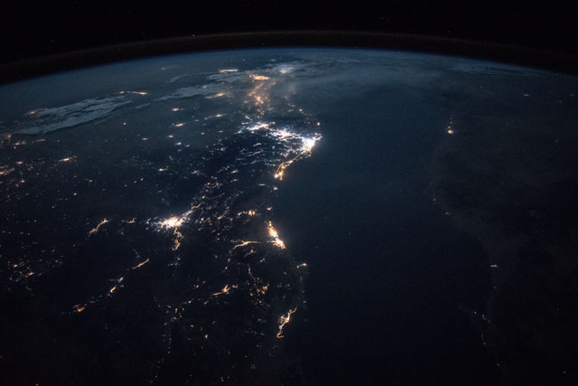 Features: | YANBU CITY, RED SEA, MEDINA CITY, JEDDAH CITY, NUBIAN DESERT, MECCA CITY, NIGHT, EARTH LIMB |
