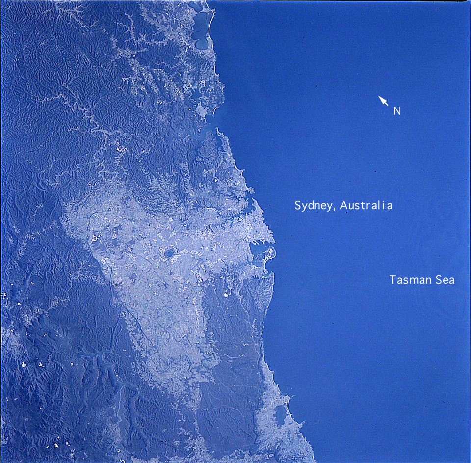 Spacecraft nadir point: 33.2° S, 151.2° E